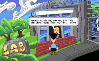 The intern is ready for his first day at the Lab Lab. Unfortunately, he's mistaken for the mumbling physicist Dr. D.N. Turn by his coworkers and a confectionery mishap has left him unable to speak. With not a working pen in the building, can the intern communicate his identity to the scientists? Will the pet piranha be able to add another mark to his tally of devoured interns? Play this short point and click adventure to find out!